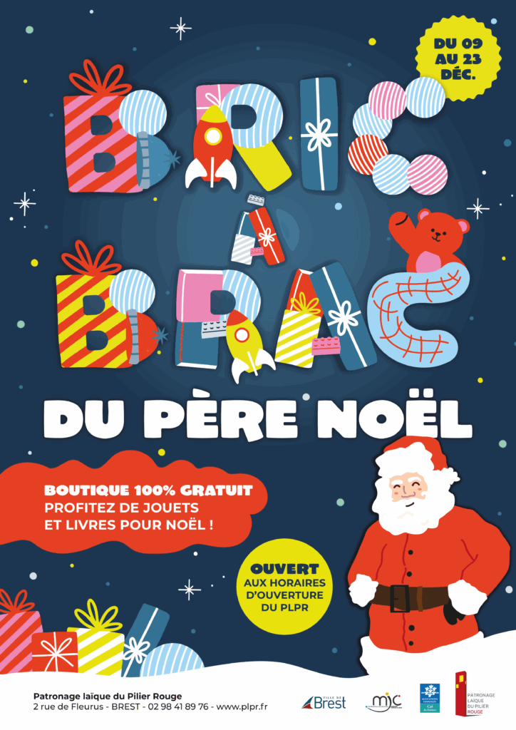 Du 9 au 23 décembre 2025, le Patronage Laïque du Pilier Rouge ouvre à nouveau les portes de sa boutique solidaire 100 % gratuite, le Bric à Brac de Noël !
