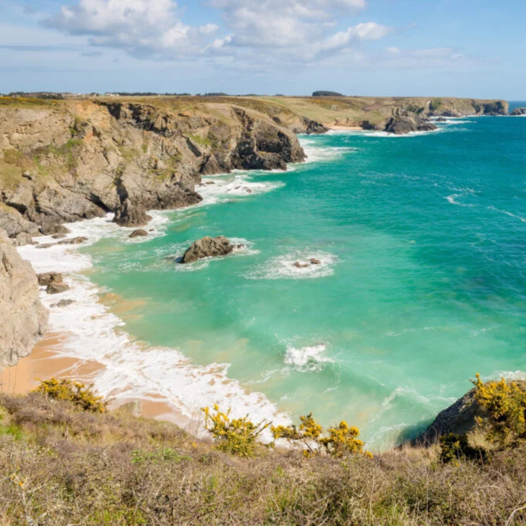 Au cœur de l’océan Atlantique, Belle-Île-en-Mer déploie ses paysages contrastés : falaises spectaculaires, criques aux eaux turquoises, plages de sable fin, villages de charme. Un séjour pensé pour profiter pleinement de l’île, à un rythme doux et accessible à tous.