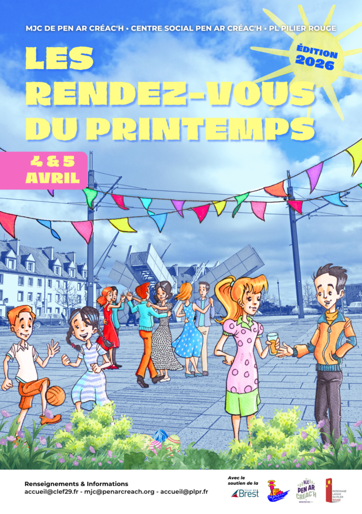 Le temps d’un week-end, la MJC de Pen Ar Créac’h, le Centre Social de Pen Ar Créac’h et le PL Pilier Rouge s’associent pour vous offrir Les Rendez-vous du Printemps 2026 : une programmation riche et éclectique, pensée pour petits et grands, avec en fil rouge la bonne humeur, le chant et la découverte de Brest.