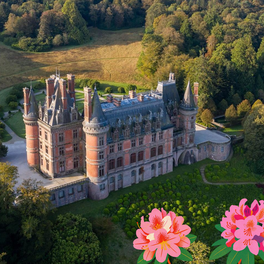 Au printemps, le domaine se transforme en véritable tableau coloré. C’est la saison idéale pour se promener dans les jardins et admirer la floraison des rhododendrons, qui font la réputation du lieu.